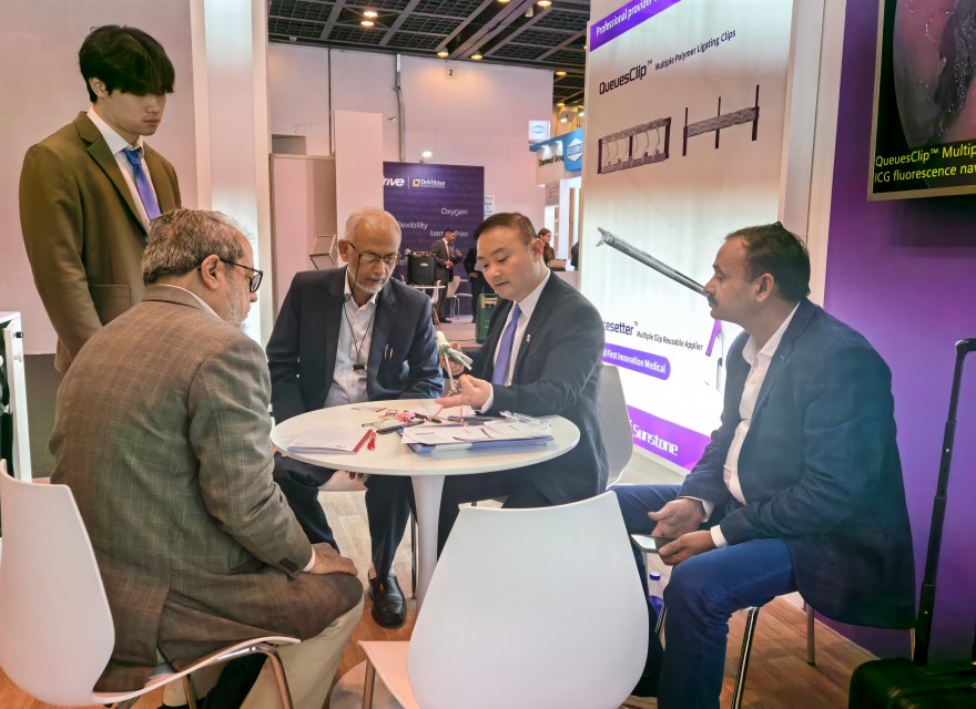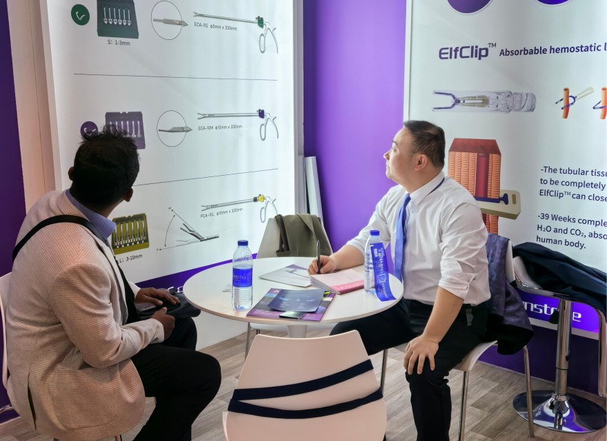 圣石科技此次展出的數(shù)款微創(chuàng)手術(shù)創(chuàng)新醫(yī)療器械產(chǎn)品,憑借其全新的產(chǎn)品設(shè)計(jì)理念,領(lǐng)先的精密工藝技術(shù)和卓越的性能,吸引了來自全球的目光。展位前人潮涌動,來自中東、歐洲、亞洲及非洲等地區(qū)的客戶和友商紛紛駐足,深入了解產(chǎn)品細(xì)節(jié)并洽談合作。